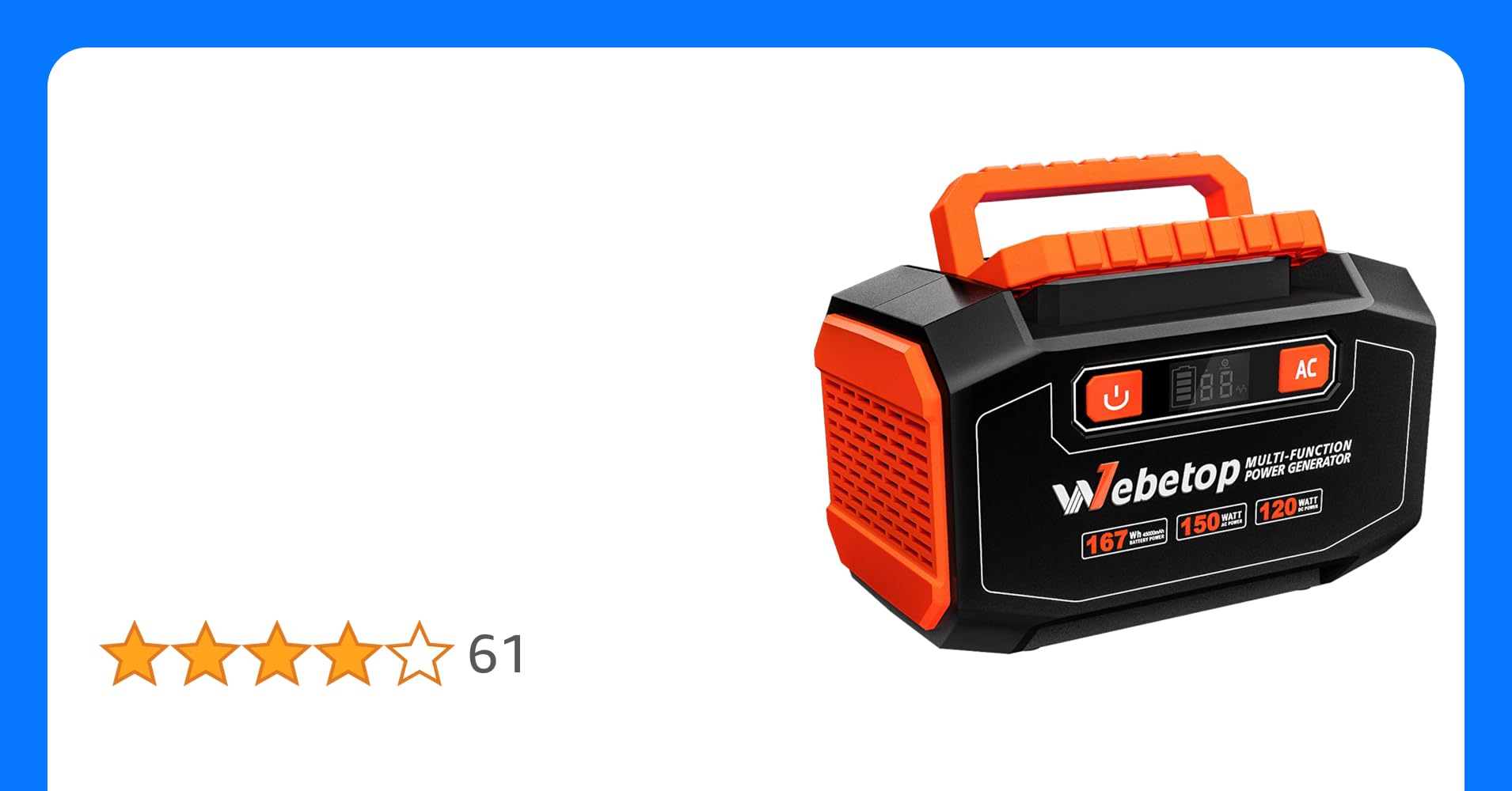 Webetop ポータブル電源 大容量 45000mAh 167Wh 家庭用蓄電池 予備電源 自家発電機 AC 150W DC USB出力 QC3.0急速充電 LED画面表示 三つの充電方法 キャンプ 車中泊 アウトドア 地震 台風 防災 停電時に [12ヶ月保証]